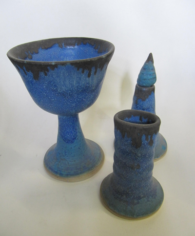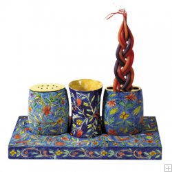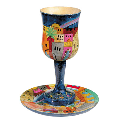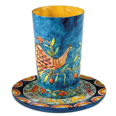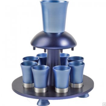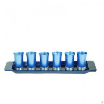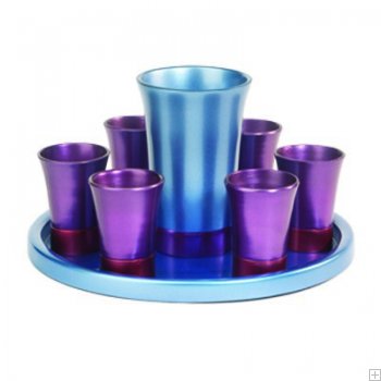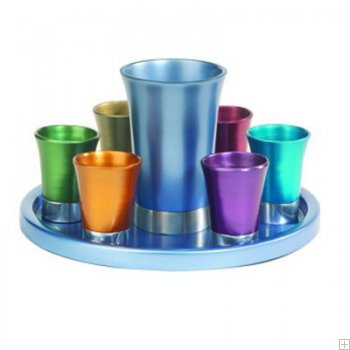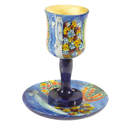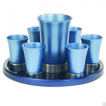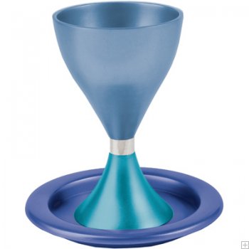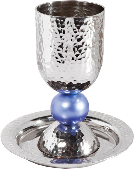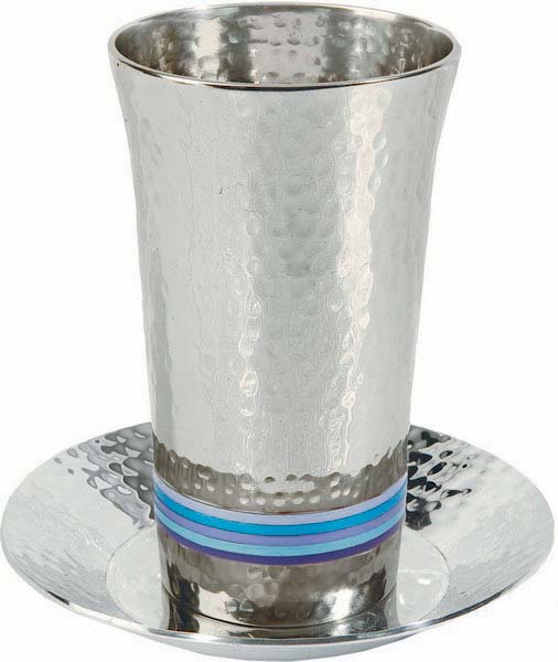 Yair Emanuel Silvered Kiddush Cup and Plate - Blue