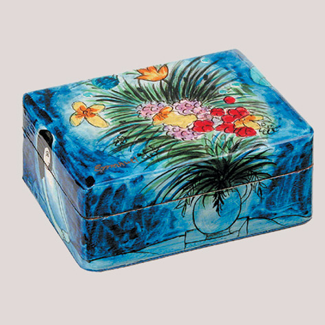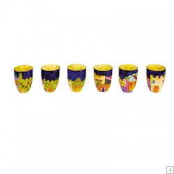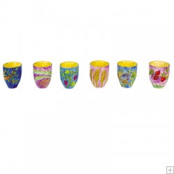 Each cup and plate is hand – painted with a brush using acrylic colors and then lacquered. The cup can be used for drinking and also be washed by hand in water since it is coated with several layers of lacquer.