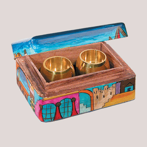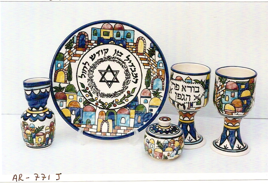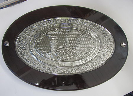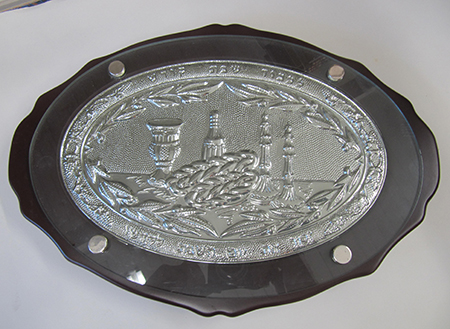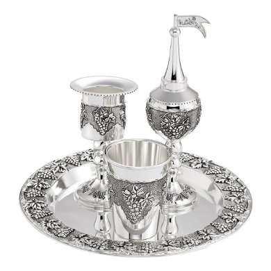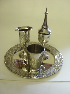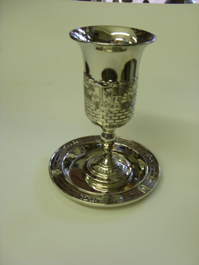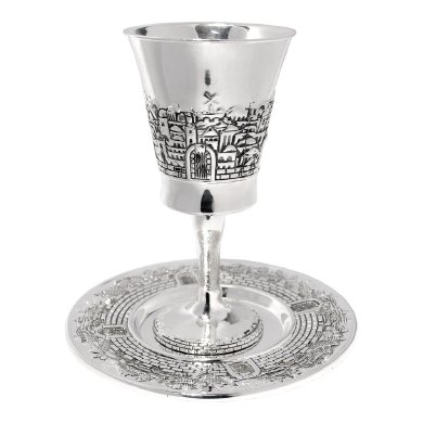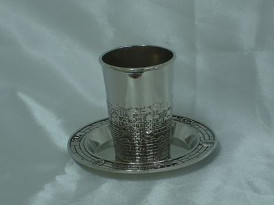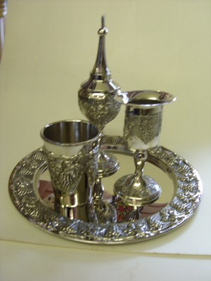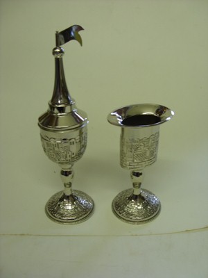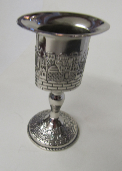 Nickel finish Jerusalem design. Kiddush cup & Tray