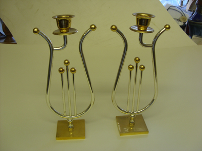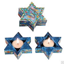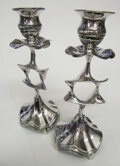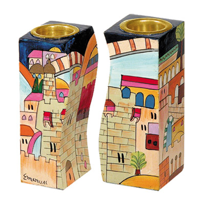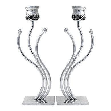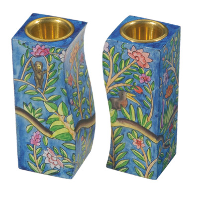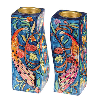 Painted Metal Lazer Cut shabbat Candlesticks - Birds Tree