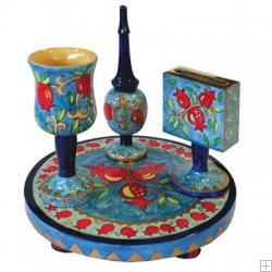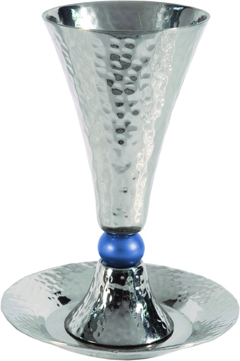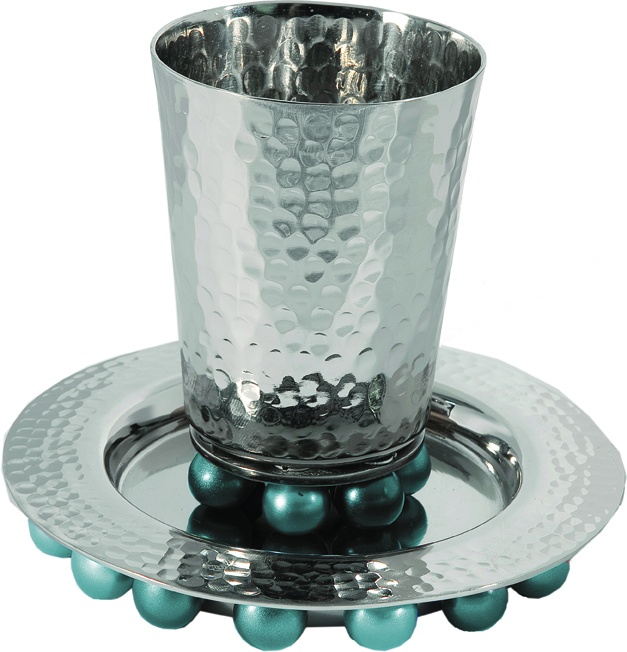 Yair Emanuel Kiddush Cup and Plate with Beads - Blue