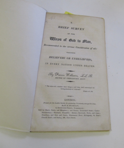 A Brief Survey of the Ways of Man. London circ 1800. Wrapps pp30. Hebrew page. Good condition.