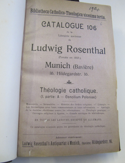 2 Bouns Catalogues No106 & 150. Theology Catholique, Bibliotheca Liturgica. Circ 1913. Half Calf Bindings. Scuffed. Internally Good condition.