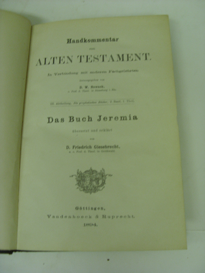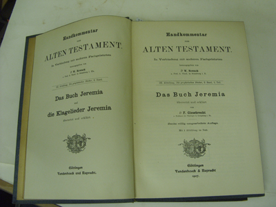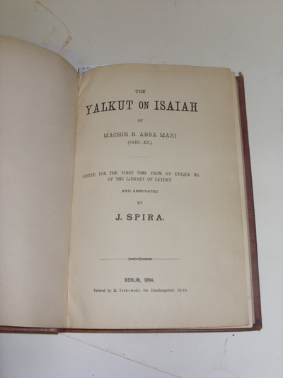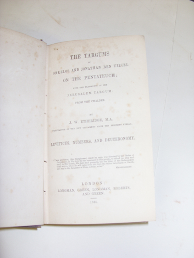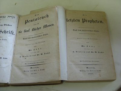 Der Pentateuch das ist die funf Bucher Moses / Die Letzten Propheten. Berlin, 1855 & 1858. 2 vols. Hardback's. Boards detached. Some heavy spotting. Gothic German text.
