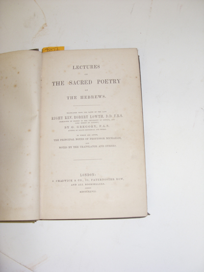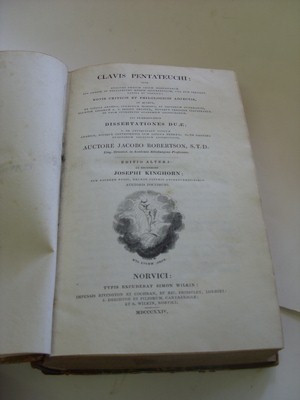 Auctore Jacob Robertson: Clavis Pentateuchi Sive Analysis Omnium Vocum Hebraicarum. Norvici, 1824. Worn binding with loss. Internally good