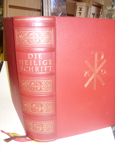 Die Bibel Oder Die Ganze Heilige Schrift Des Alten Und Neuen Testaments Von Martin Luthers. Pub Luzern 1964. Folio, Red calf binding. With 88 full colour illustrations from the masters. Owers name to Frontis. Nice condition