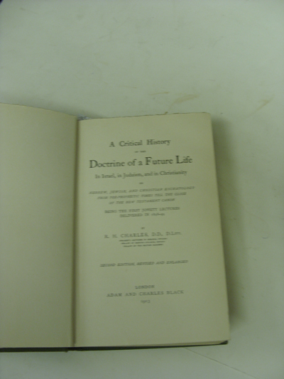 A critical history of the doctrine of a future life. London 1913. Hardback. Good condition (35391)
