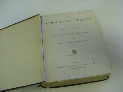 Samuel Bagster: The Septuagint Version of the Old Testament, London 1879. Covers scuffed & worn, Binding Sl. Pulled. o/w Good condition (56274)