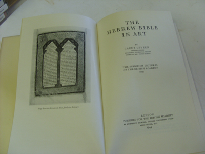 The Hebrew Bible in Art, London. Schweich lectures. 1944. Hardback with 41 b/w plates good condition (48884)
