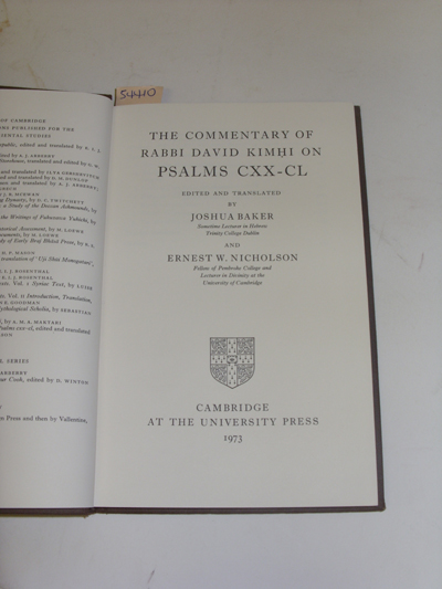 The Commentary of Rabbi David Kimhi on Psalms CXX-CL. Cambridge 1973. Hardback. Good condition (54410)