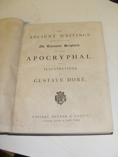 The Ancient writings commonly attached to the Old Testament and accounted Apocryphal, with illustrations by Gustav Dore. London circ. 1900. Scuffed hardback. Good condition (54405)