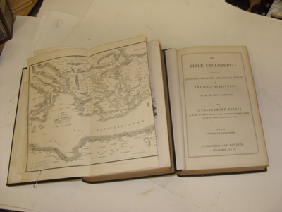 The Biblicals Cyclopedia, Vols 1 & 2. Edinburgh 1870's. Scuffed leather spines. Many steel engraved plates. Good condition (54975)