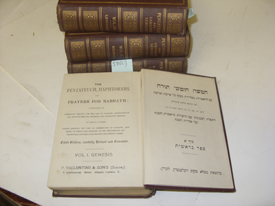 Vallentine Published: The Pentateuch, Haphtorah & Prayers for Sabbath. London 1915. Hebrew/English. Genesis, Exodus, Levitcus & Deuteronary only. Good condition (55024)