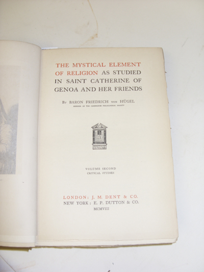 The Mystical Element of Religion as studied in Saint Catherine of Genoa and her friends, Vol. 2. Hardback. Spine scuffed, good condition