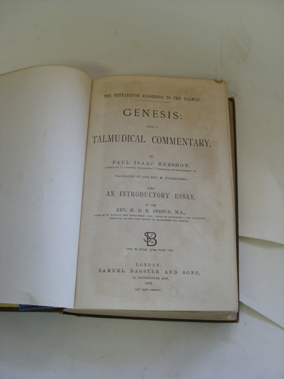 Genesis: With a Talmudic Commentary. Samuel Bagster, London. 1883. Hardback. Covers scuffed. Good condition.
