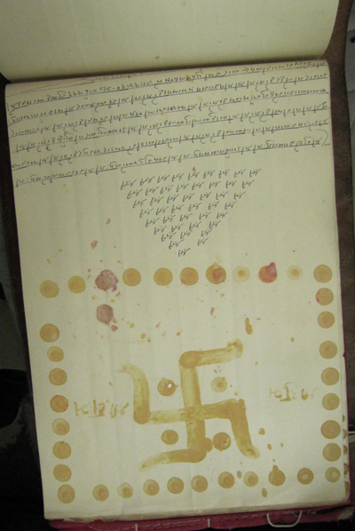2x Large Leather India Banking / Similar account books circ 1900. Good luck reverse swastika symbols.