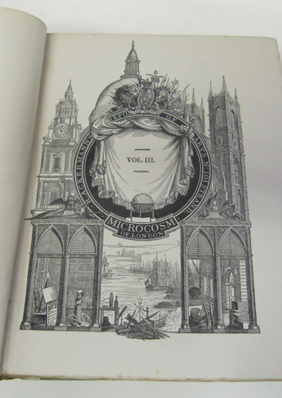 The Microcosm of London or London in Miniture. With 40 Illustrations by Pugin & Rewlandson. Methuen, London 1904. Set of 3 Vols. Ex-Library copies. Spines scuffed. Internally good condition.