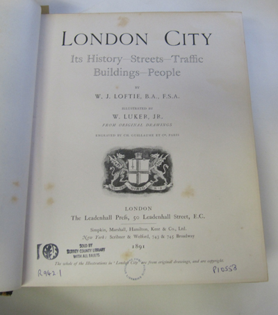 W.J.Loftie & W.Wker - London City Its History - Streets - Traffic - Buildings - People. London 1891. Ex Library copy. Binding loose, o/w good condition.