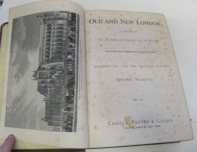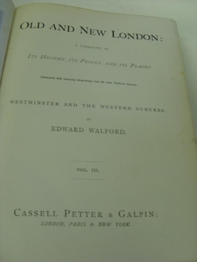 Edward Walford: Old and New London, Vol 3 - Westminster and the Western Suburbs. London 1890's. Covers worn & loose. Some spotting. Woodcut illustrations.