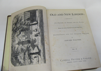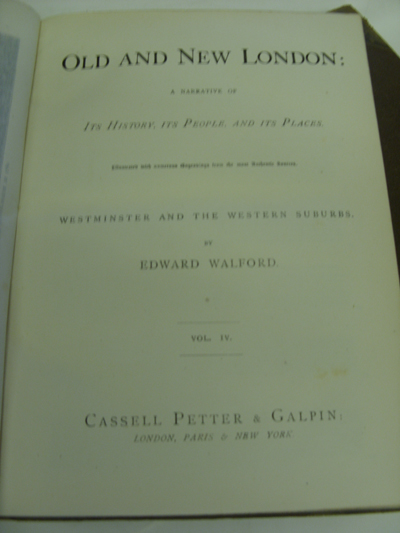 Edward Walford: Old and New London, Westminster & The Western Suburbs. Vol 4. London 1890's. Illustrated with numerous woodcut engravings. Binding worn.