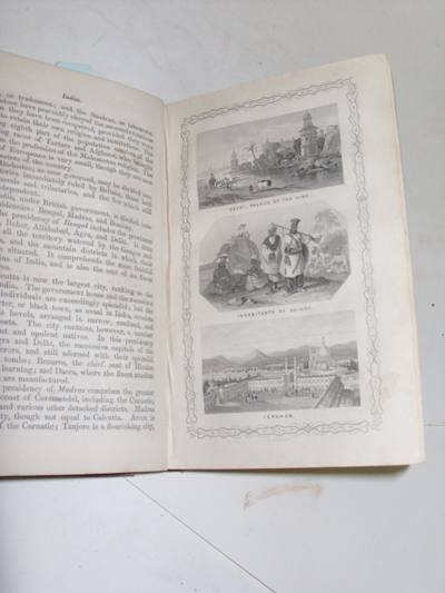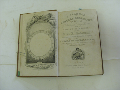 Goldsmith: A grammar of general geography with maps & engravings by Edward Hughes. London circ 1840. Binding pulled, scuffed. Good condition