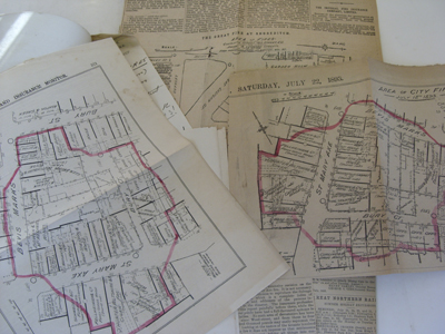 2 Folders, London 1890's. Regarding insurance claims in London, Manchester, Bristol, New York etc. Hand written, notes, plans, news, clippings. Good condition