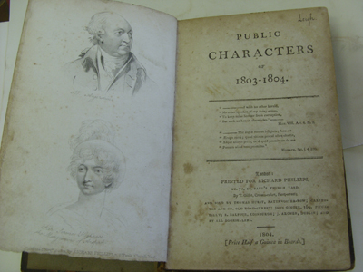 Public characters of 1803-1804. Printed for Richard Phillips. London 1804. Illustrated. Half calf, worn, front board detached. Foxing. o/w good