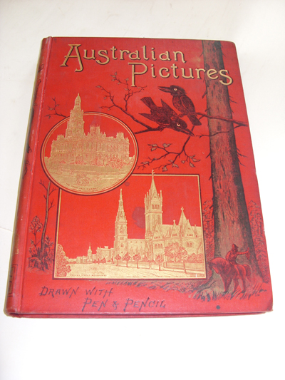 Howard Willoughby: Australian pictures drawn with pen and pencil. London R.T.S Pub. 1886. Decorative cloth covers, Map & 107 illustrations by E.Whymper. Light spotting. Owners name cut from end papers. Good condition