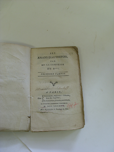 Les Amans D'Autrefois. Paris 1787. Premiere Partie. Wrapps. pp156. With pp3 Music. Scarce. This vol.1 only. Scuffed. Pages rough cut.