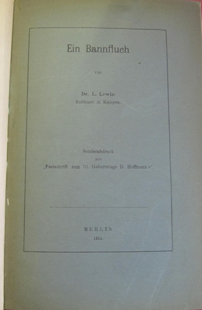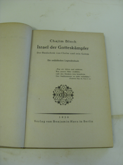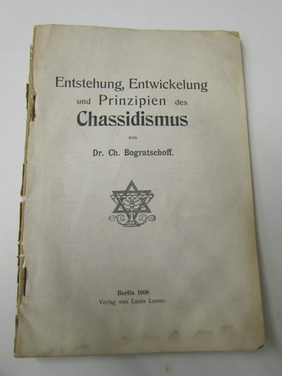 Entstehung, Entwickelung Und Prinzipien Des Chassidismus Berlin 1908. Paperpack, Lacking front cover. Good,