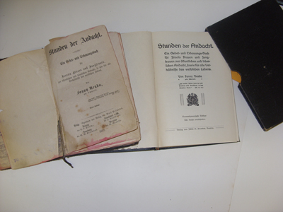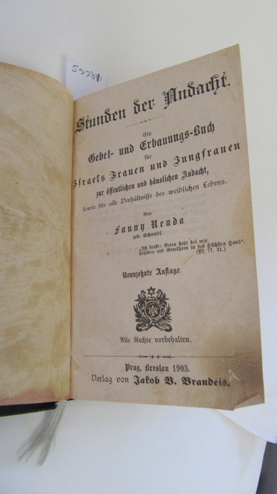 Stunden Der Andacht, Uerlag Jacob Brandeis. Breslau. 1903. Small Sl. Scuffed hardback. Good condition.