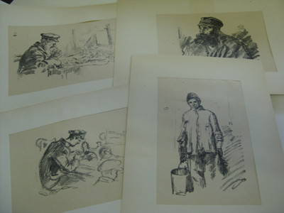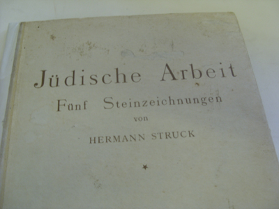 Judische Arbelt, funf Steinzeichnungen Von Herman Struck. Welt Verlag, Berlin. 1920's. Folder with 4 prints only as shown. Good condition.