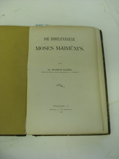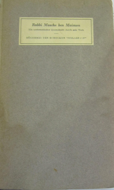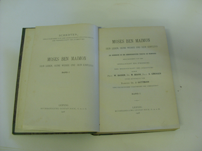 Moses Ben Maimon Seine Leben, Seine Werke Und Seine Einfluss Leipzig 1908. Hardback. Vols 1 & 2 bound as 1. Good condition.
