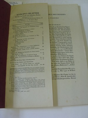 Herrmann Meyer: Soncino Blatter, Band 3, Heft 1. Berlin 1929. Paperback. Tape repair to spine. Good