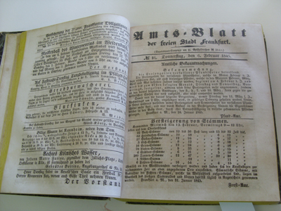 Register Zu Dem Amts- Blatt Der Freien Stadt Frankfurt, Jahrgang 1946. Hardback scuffed. Lacking spine, No1-No155, Jan 1845-Dec 1845. Good