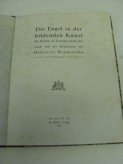 Die Engel In Der Bildenden Kunst. Ein Beitrag Zur Kunstgeschichte Der Gotik Und Der Renaissance. Berlin, B.Behrs Verlag. 1907. Half calf binding marbled boards. Illustrated. Spine scuffed. Good condition (35182)