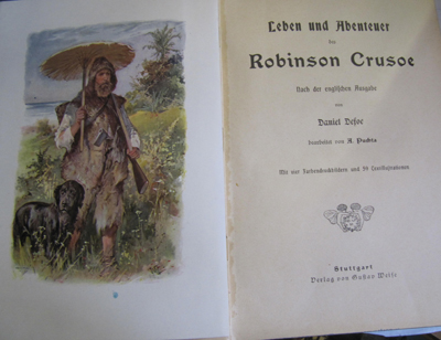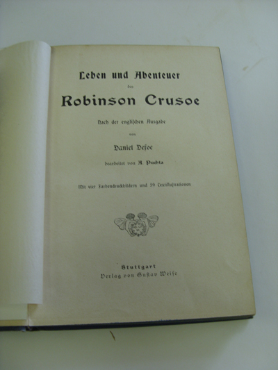 Daniel Defoe: Leben Und Abenteuer Des Robinson Crusoe. Stuttgart. Circ. 1910 with 4 Col. Plates & 59 woodcuts. Good condition