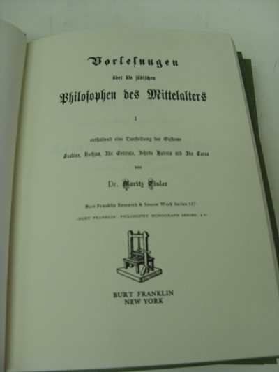 Vorlesungen Uber Die Judischen Philosophen Des Mittelalters, B.Franklin reprint, New York 1970's. 2 Vols. Hardback's. Very good (34696)