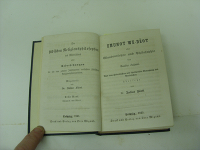 Emunot We-Deot Ober Glaubenslehre Und Philosophie Von Shadia Fajjumi. Leipzig 1845. Hardback. Good condition