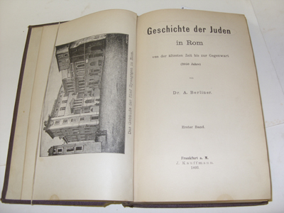 Dr.A Berliner: Geschichte der juden in Rom von der altesten zeit bis zur gegenwart. Pub. Frankfurt 1893. Hardback. Scuffed. Good.