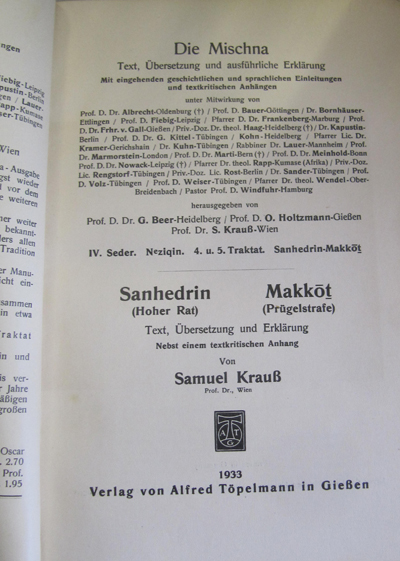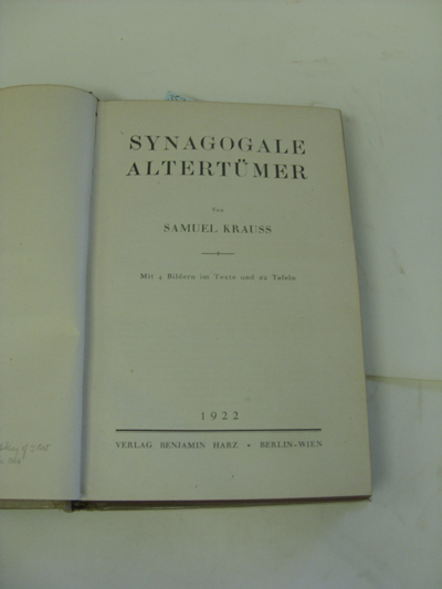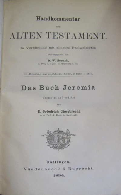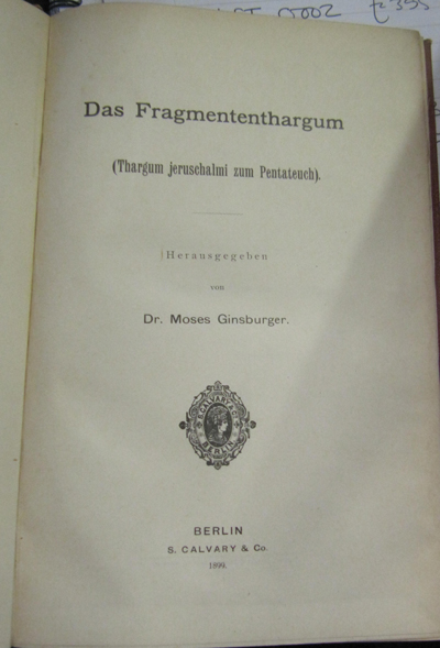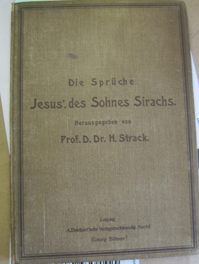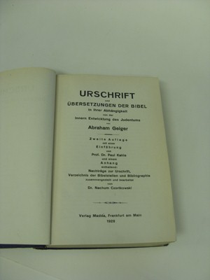Prolegumena Critica In Vetus Testamentum Hebraicum. Lipsig 1873, Bound with Einleitung In Den Thalmud 1894 and Frankel Palastinischen Exegese Auf Die Alexandrinische Hermeneutik1851. Library cloth. Scuffed.