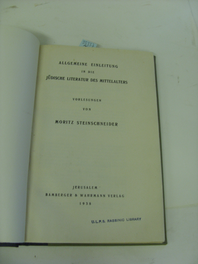 Allgemeine Einleitung in Die Judische Literatur Des Mittelalters Jerusalem, 1938. Ex-Library copy. Hardback, Good condition