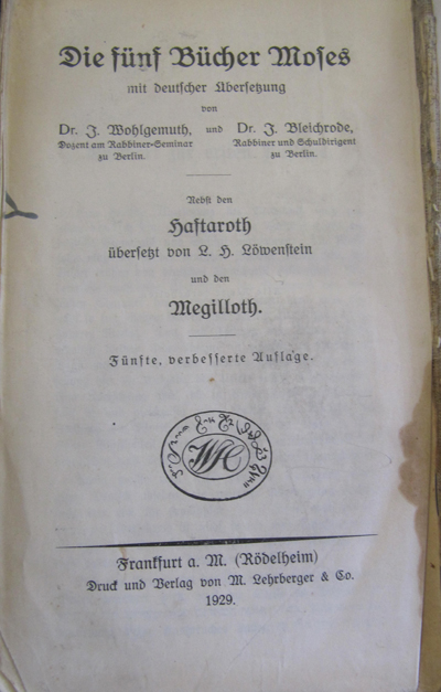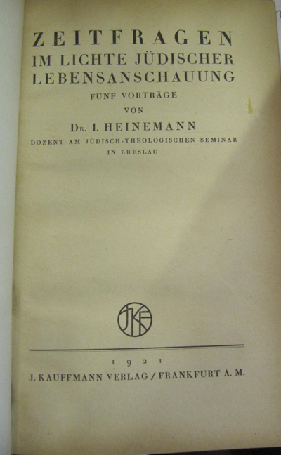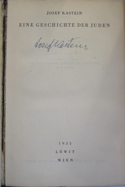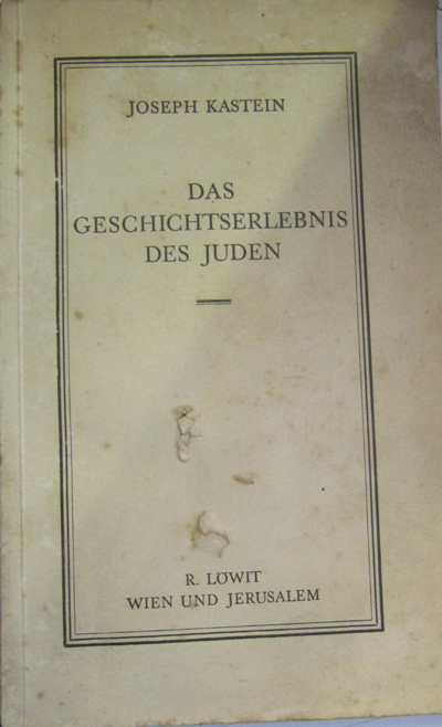 Das Geschichtserlebnis Des Juden. R.Lowit Pub, Wien 1936. Signed copy. Damage to book as shown.