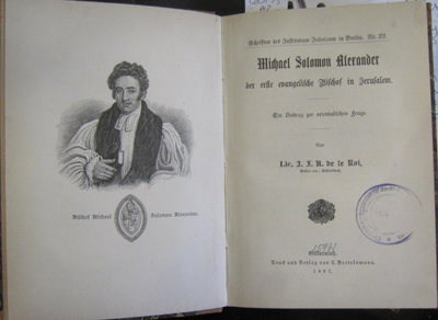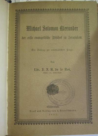 Michael Solomon Alexander, Der Erste Evangelishe Bischof in Jerusalem. Gutersloh, 1897. Library stamp. Hardback.