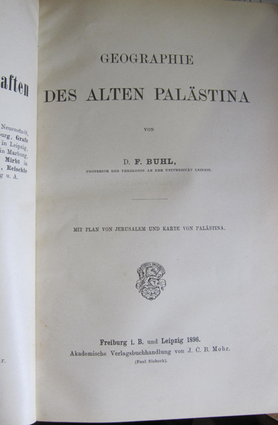 Geographie Des Alten Palastina Freiburg, 1896. Half Calf, Scuffed. Loewe/Montefione Bookplate. Good.