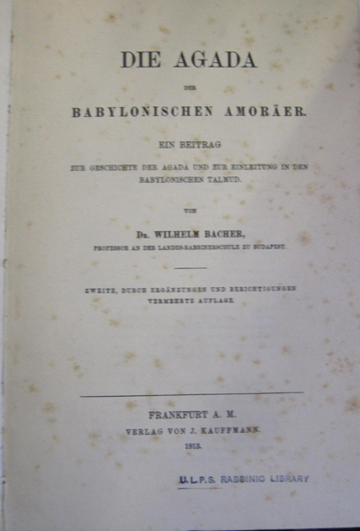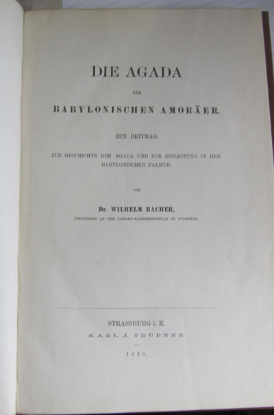Die Agada Der Babylonischen Amoraer. Strassburg, 1878. Hardback. Good