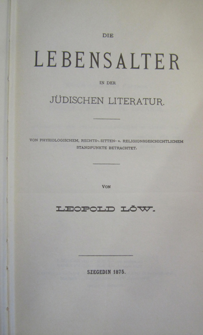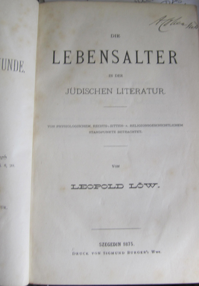 Die Lebensalter In Der Judischen Literatur. Szegedin, 1875 Hardback. Library binding. Good
