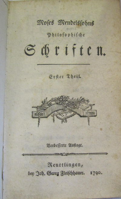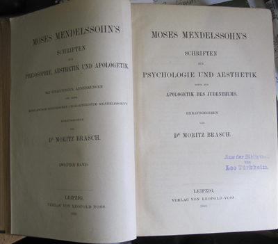 Moses Mendelssohn's Schriften Zur Psychologie Und Aesthetik. 2 Volumes. Green cloth. SL Scuffed. Good.