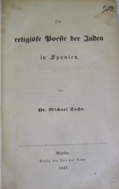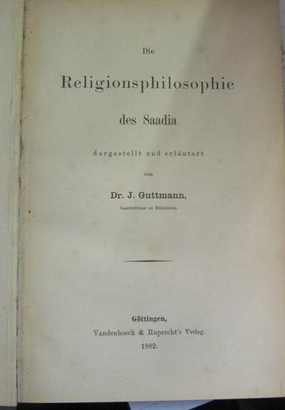 Die Religionsphilosophie Des Saadia Gottingen 1882. Library Cloth, Scuffed. Good.