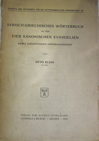 Syrisch-Griechisches Worterbuch zu den Vier Kanonischen Evangelien. Giessen 1916. Scuffed paperback.